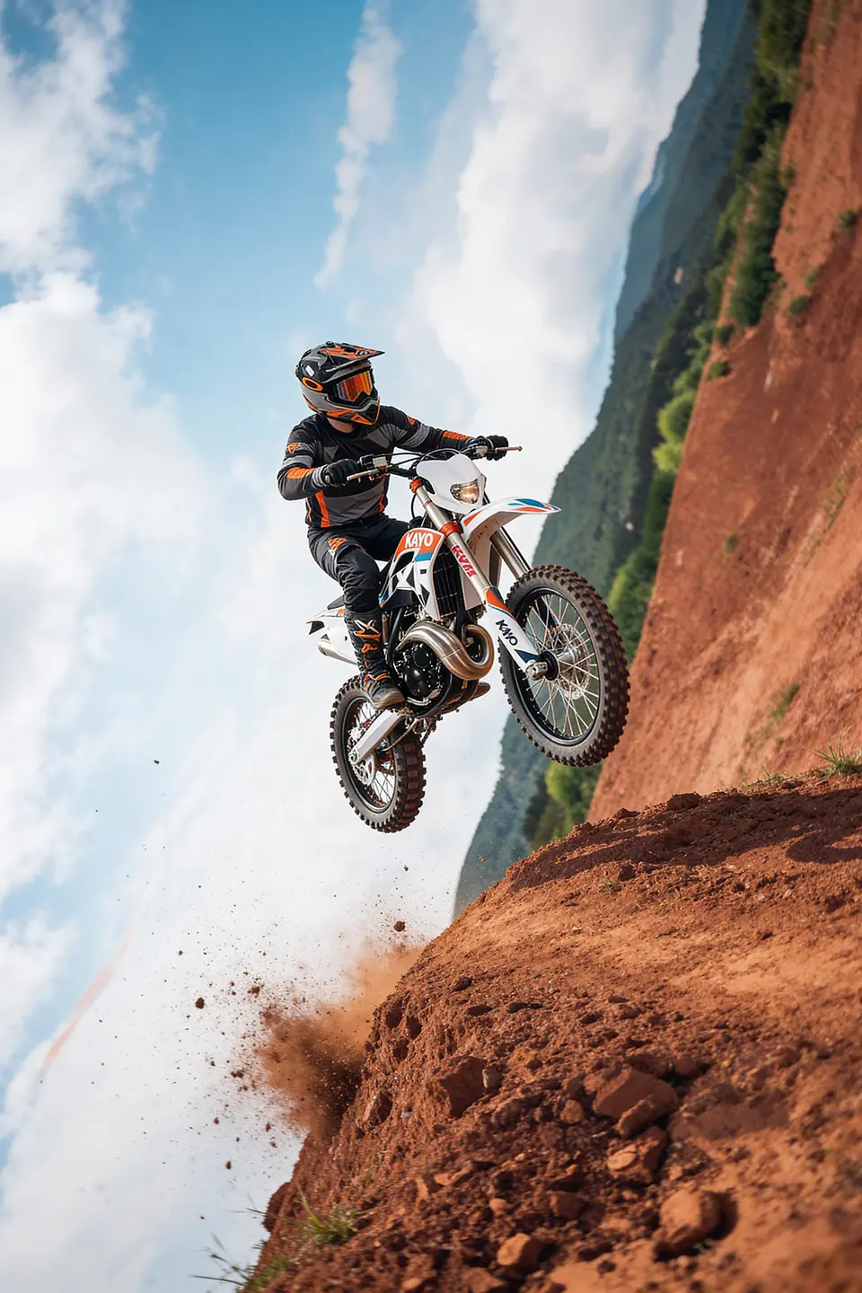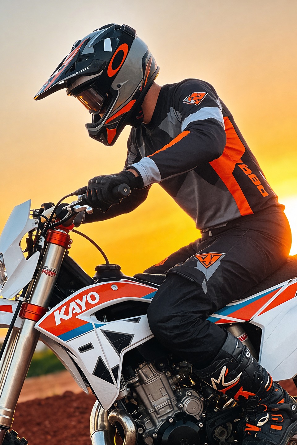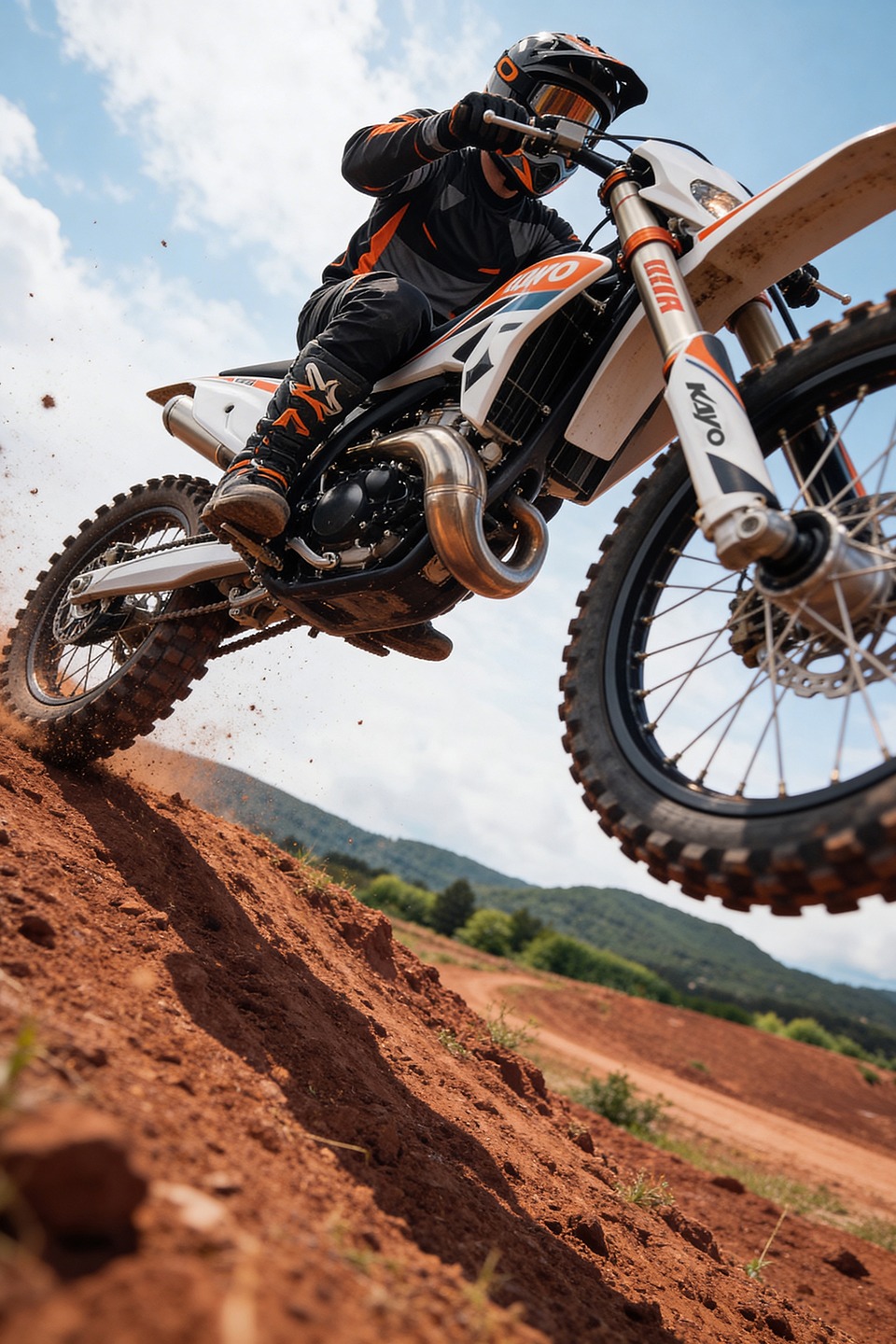 La KAYO KT250 2T combina una arquitectura orientada al rendimiento con componentes pensados para la exigencia del off-road. Equipada con motor de 250 cc, caja de 6 velocidades, arranque eléctrico y a patada, suspensión KYB regulable adelante y atrás y frenos BrakeTec de disco hidráulico de 240 mm, ofrece una respuesta precisa y un gran nivel de control. Su equipamiento se completa con cuadro de acero al cromo, llantas de aluminio, escape de aluminio, manubrio de diámetro variable, palancas rebatibles, componentes CNC y neumáticos Kenda, logrando un conjunto técnico, liviano y preparado para una conducción deportiva.
